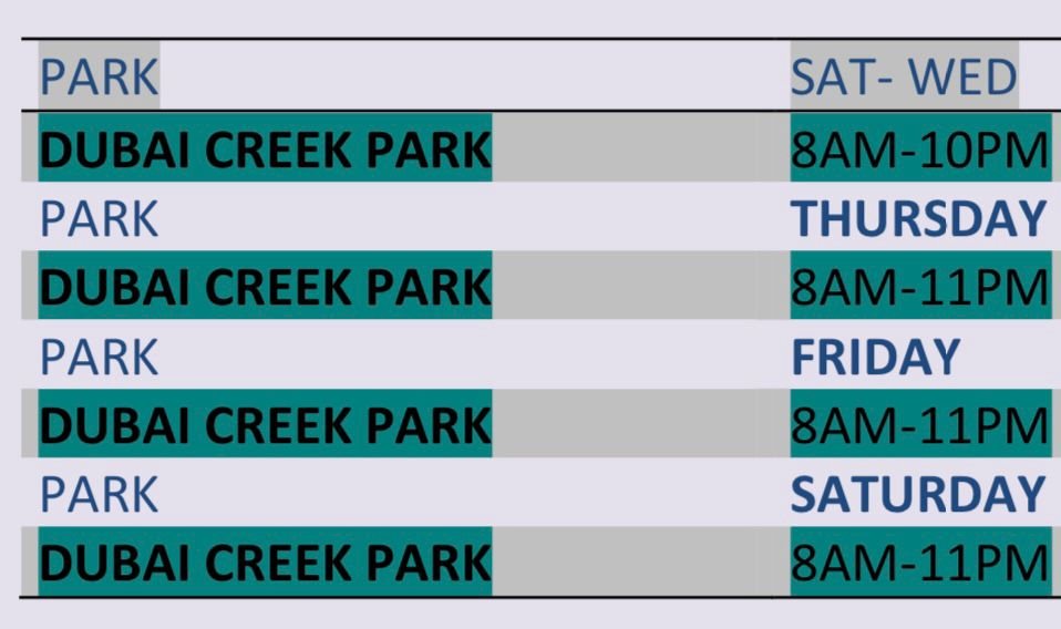 DUBAI CREEK PARK ENTRANCE FEE